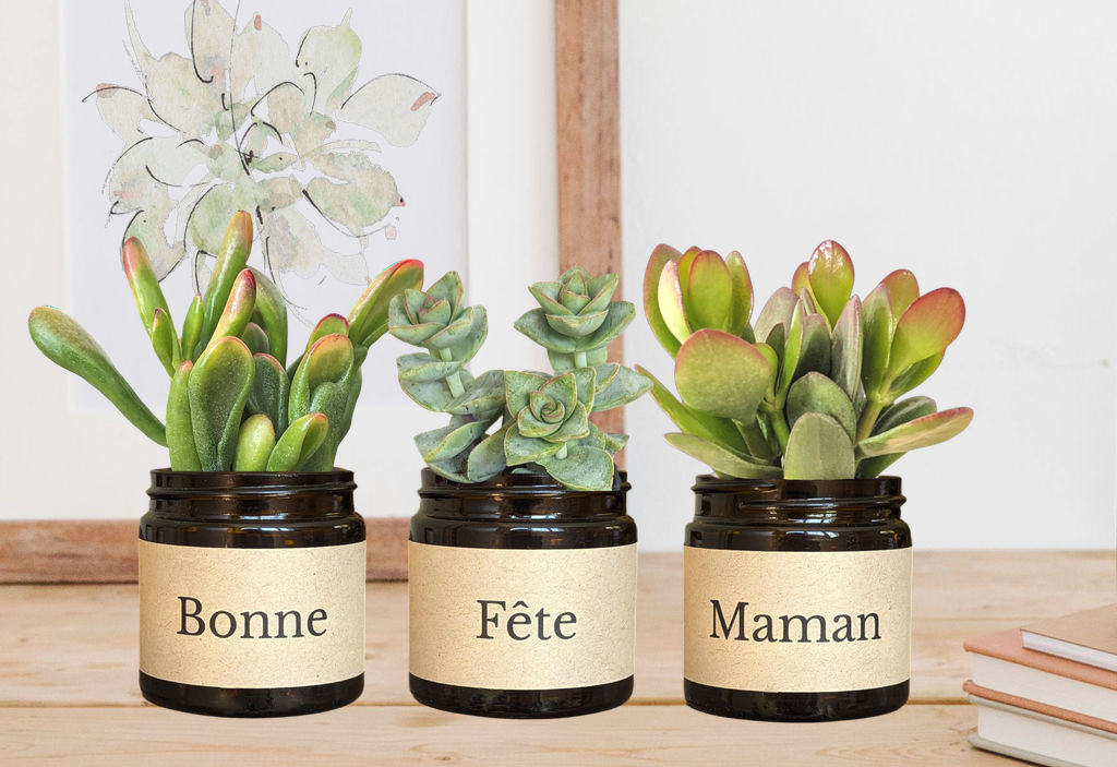 Trois plantes pour lui dire “Bonne fête maman” en douceur. ----- 🌱 Cadeau original et écologique 🇫🇷 Créé avec amour en Provence 🌿 3 variétés d'intérieur ✨ Faciles d'entretien 💌 Un message unique qui vous ressemble 📦 Expédition et livraison soignée