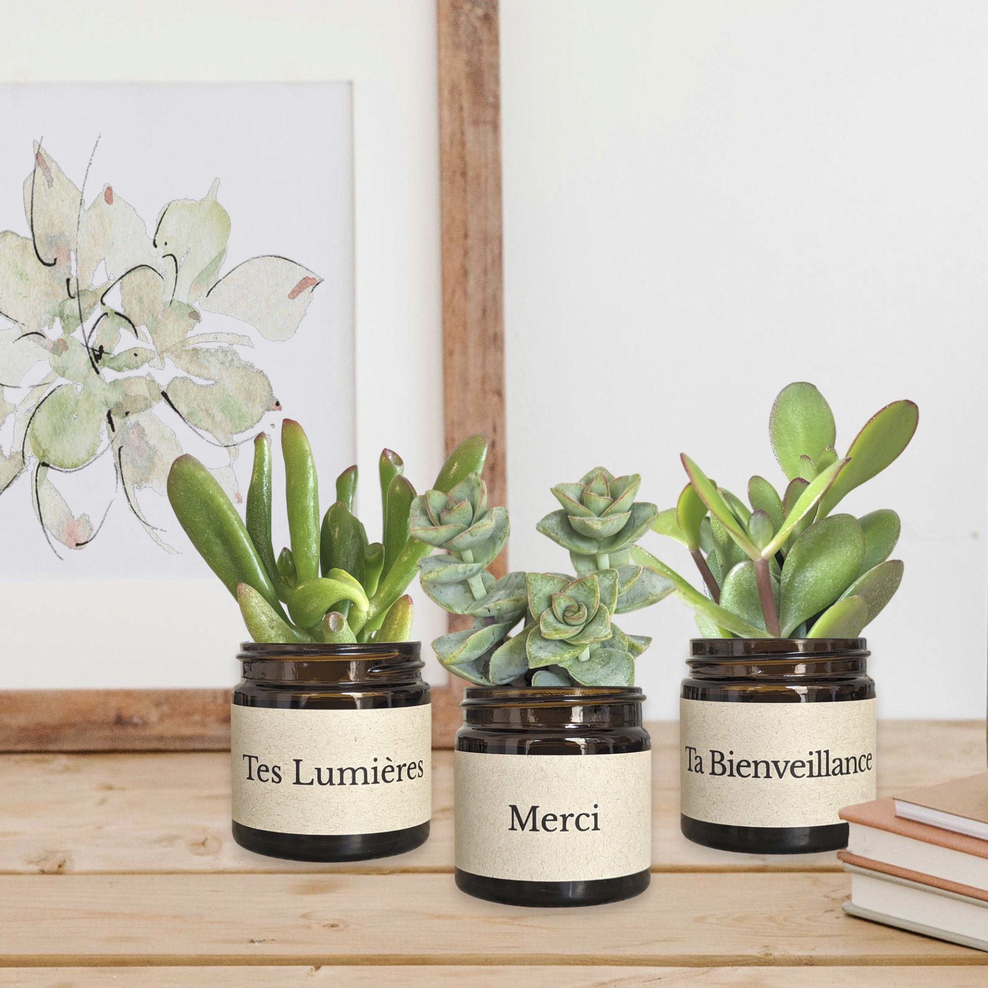 Pack 3 succulentes à message | Merci pour tes Lumières